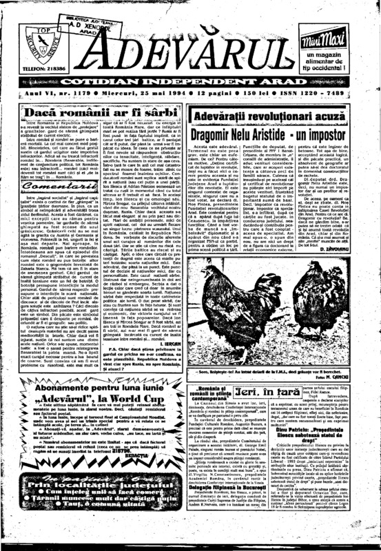 Adevărul, anul VI, nr. 1179, 1994-05-25