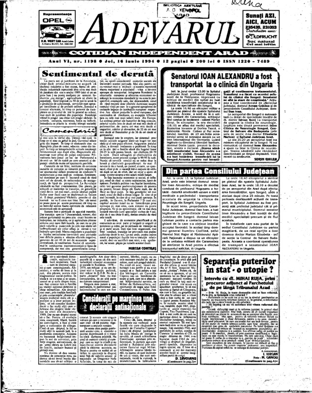 Adevărul, anul VI, nr. 1198, 1994-06-16