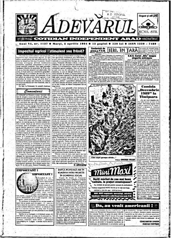 Adevărul, anul VI, nr. 1136, 1994-04-04