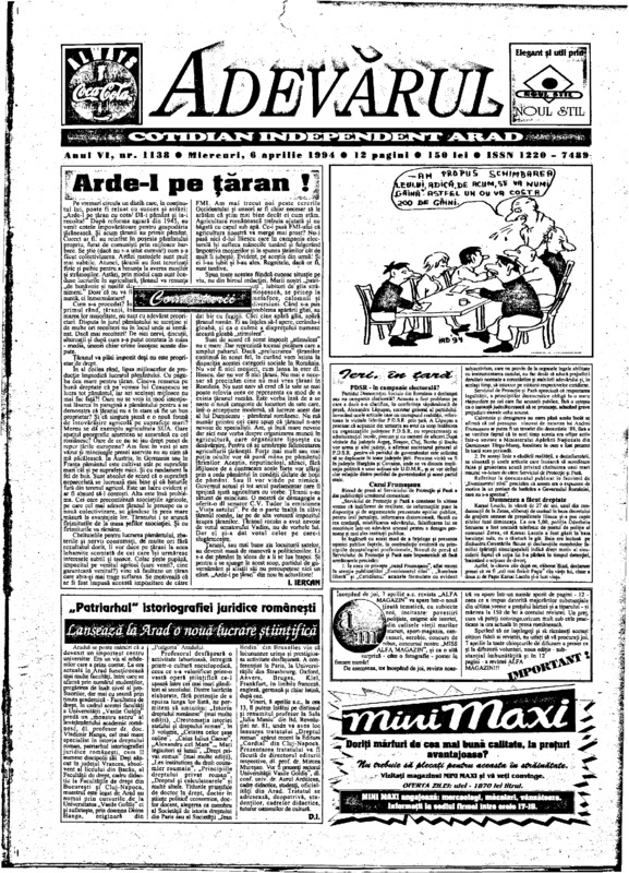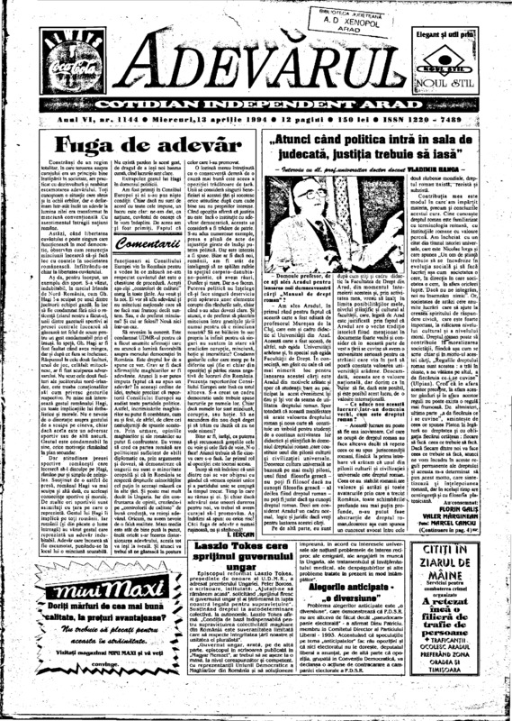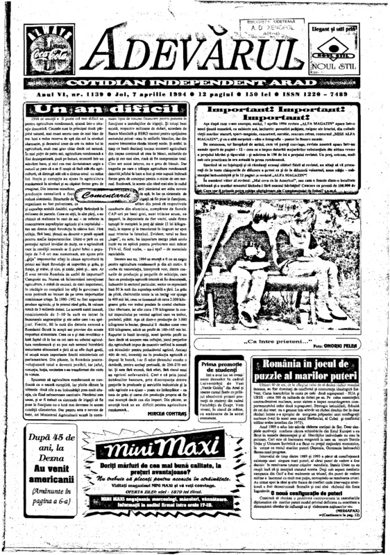 Adevărul, anul VI, nr. 1143, 1994-04-12