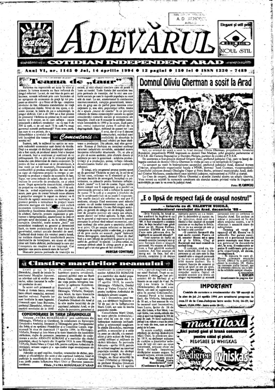 Adevărul, anul VI, nr. 1145, 1994-04-14