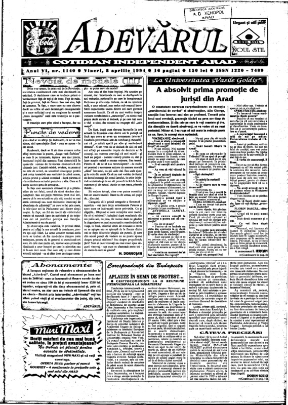 Adevărul, anul VI, nr. 1156, 1994-04-27