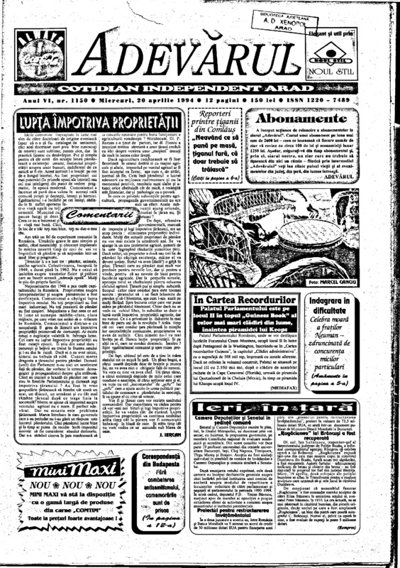 Adevărul, anul VI, nr. 1150, 1994-04-20