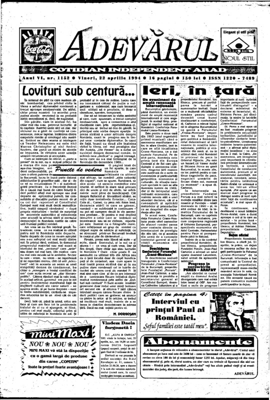 Adevărul, anul VI, nr. 1152, 1994-04-22