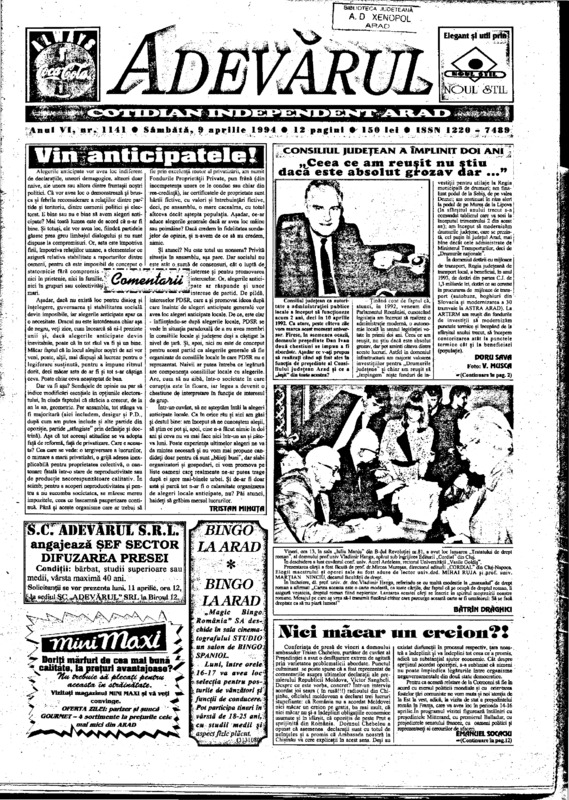 Adevărul, anul VI, nr. 1141, 1994-04-09