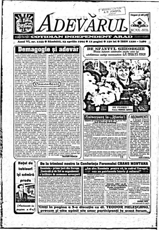 Adevărul, anul VI, nr. 1153, 1994-04-23
