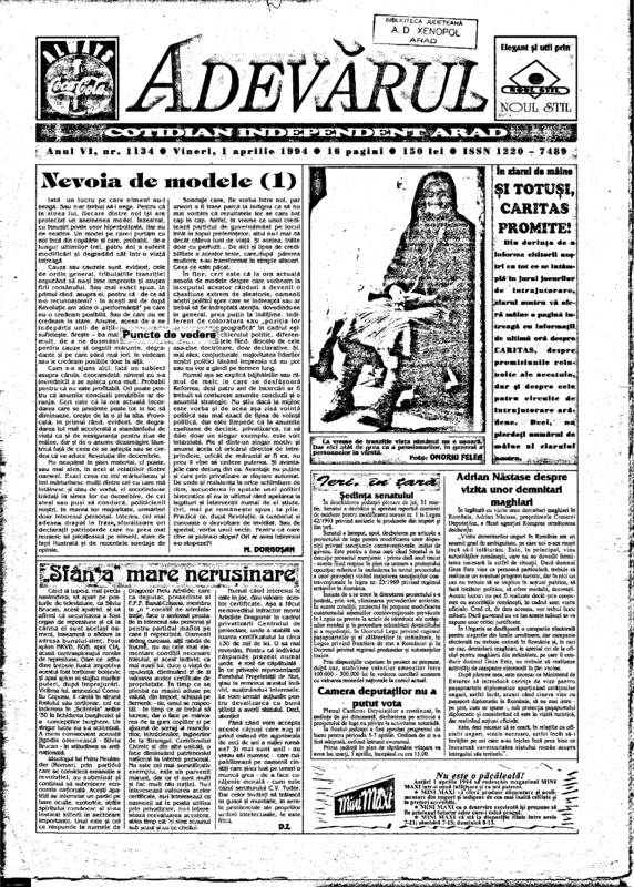 Adevărul, anul VI, nr. 1134, 1994-04-01