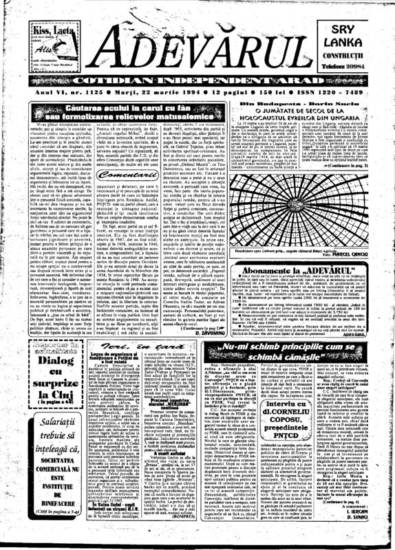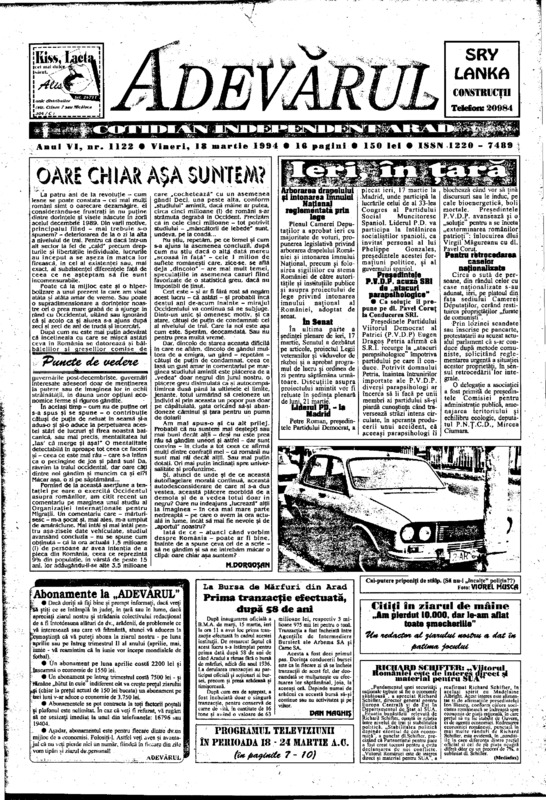 Adevărul, anul VI, nr. 1125, 1994-03-22
