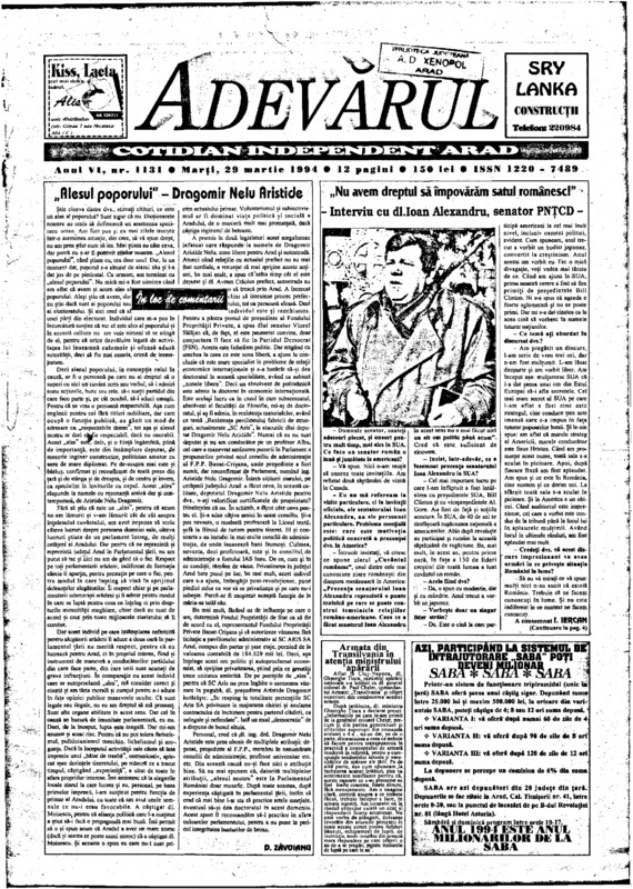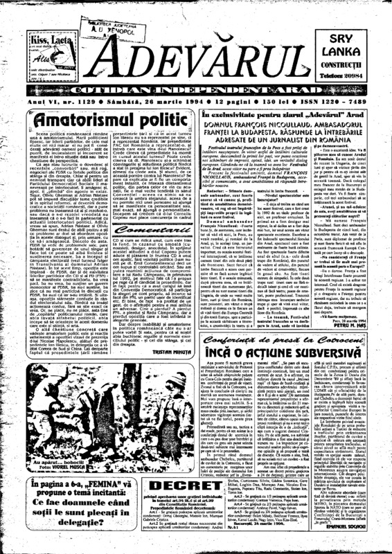 Adevărul, anul VI, nr. 1129, 1994-03-26