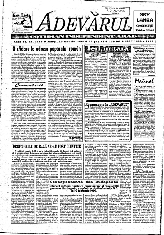 Adevărul, anul VI, nr. 1119, 1994-03-15