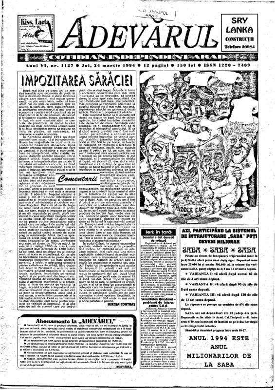 Adevărul, anul VI, nr. 1127, 1994-03-24