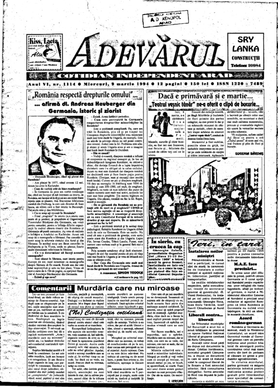 Adevărul, anul VI, nr. 1123, 1994-03-19