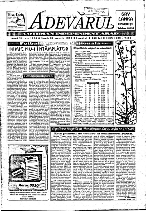 Adevărul, anul VI, nr. 1124, 1994-03-21