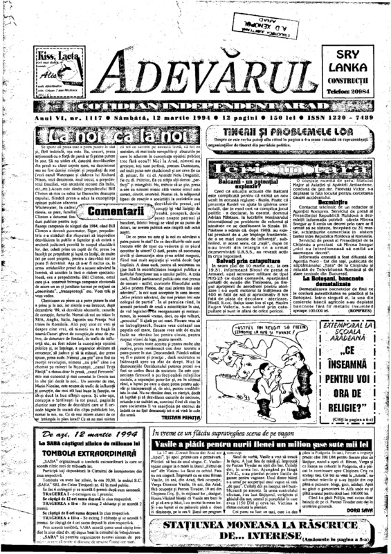 Adevărul, anul VI, nr. 1117, 1994-03-12