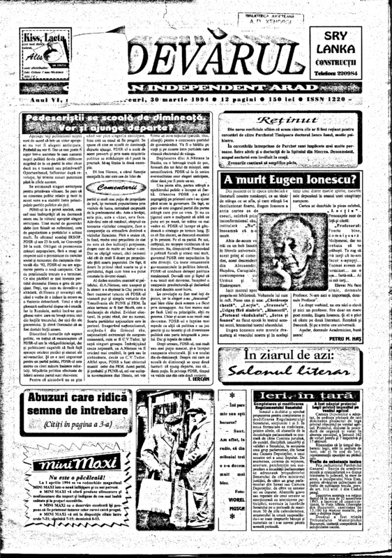 Adevărul, anul VI, nr. 1132, 1994-03-30