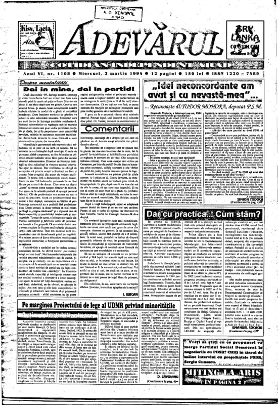 Adevărul, anul VI, nr. 1107, 1994-03-01