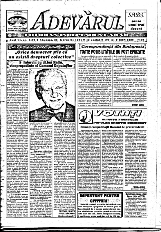 Adevărul, anul VI, nr. 1105, 1994-02-26