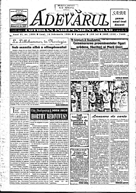 Adevărul, anul VI, nr. 1099, 1994-02-19