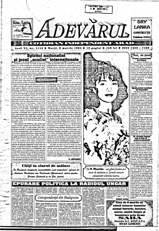 Adevărul, anul VI, nr. 1113, 1994-03-08