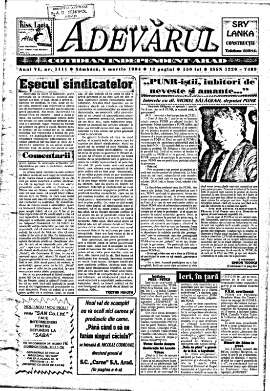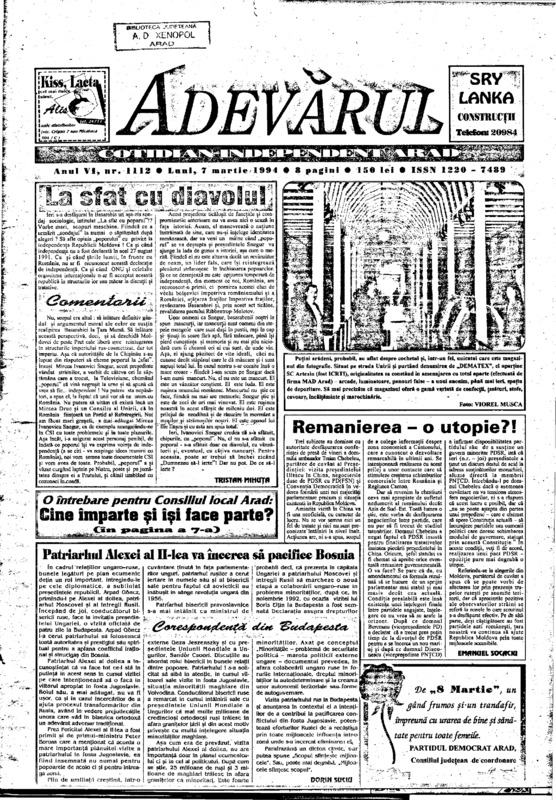Adevărul, anul VI, nr. 1112, 1994-03-07