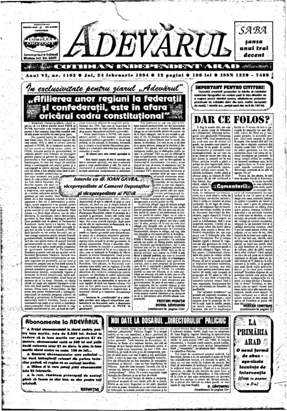 Adevărul, anul VI, nr. 1103, 1994-02-24