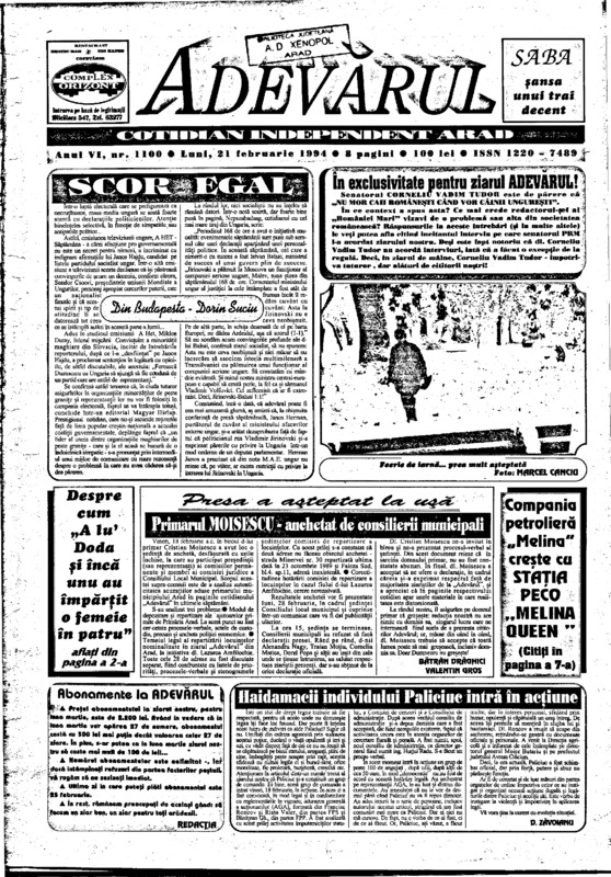 Adevărul, anul VI, nr. 1100, 1994-02-21