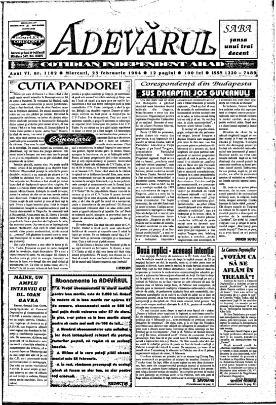 Adevărul, anul VI, nr. 1102, 1994-02-23