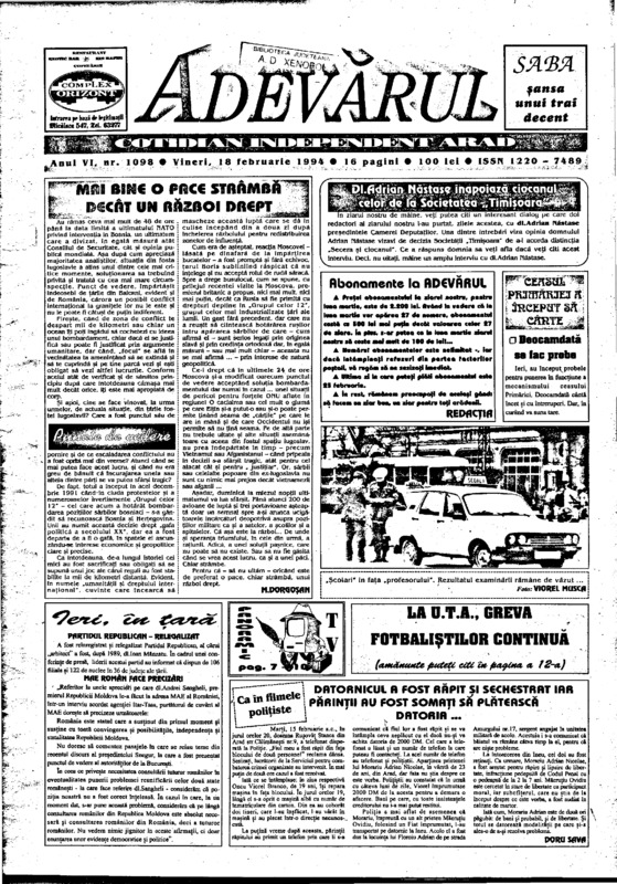 Adevărul, anul VI, nr. 1098, 1994-02-18