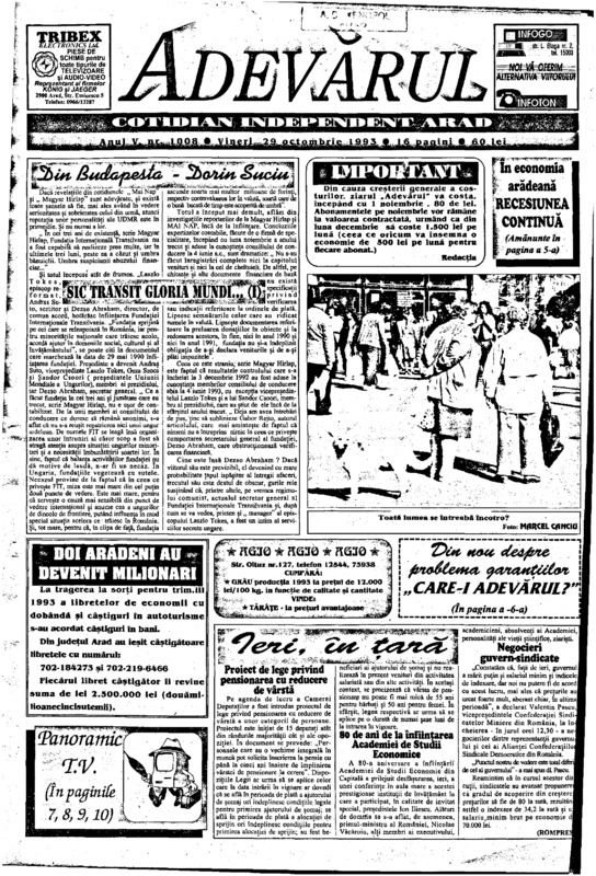 Adevărul, anul V, nr. 1008, 1993-10-29
