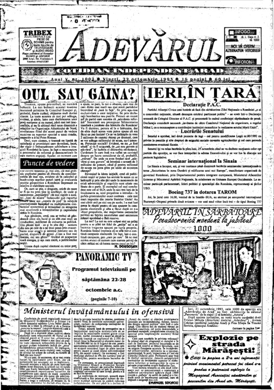 Adevărul, anul V, nr. 1002, 1993-10-22