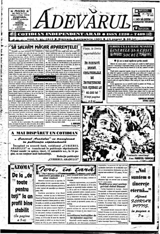 Adevărul, anul V, nr. 1012, 1993-11-03