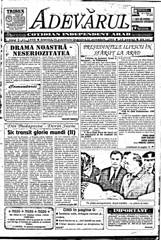 Adevărul, anul V, nr. 1009, 1993-10-30/31