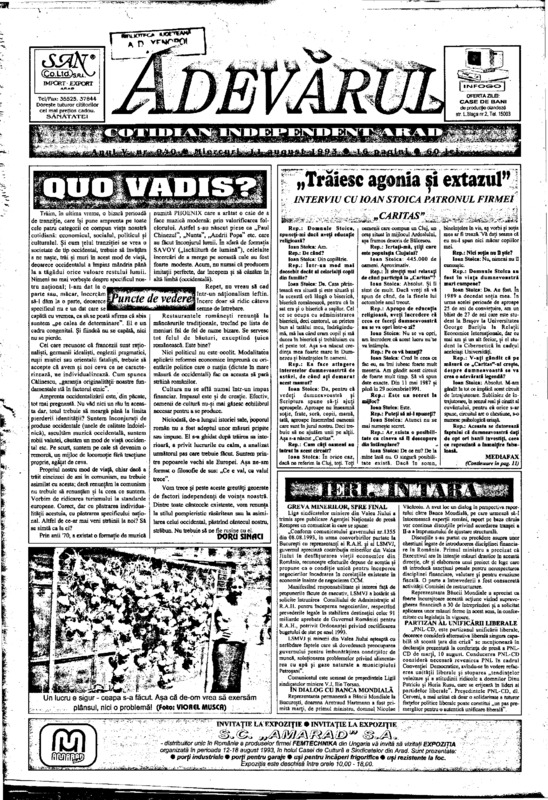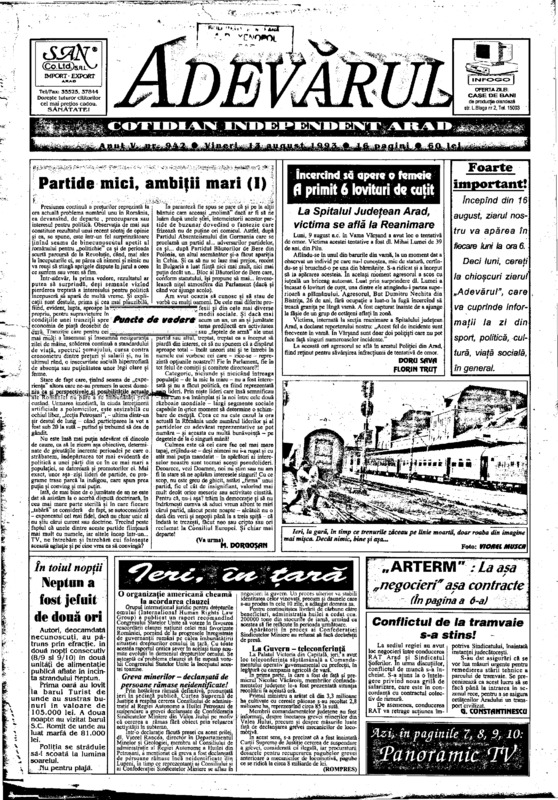 Adevărul, anul V, nr. 944, 1993-08-16