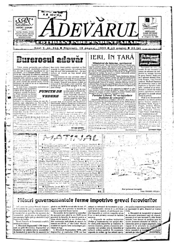 Adevărul, anul V, nr. 946, 1993-08-18