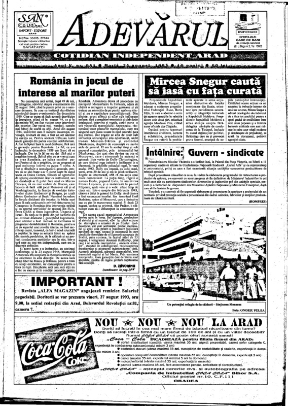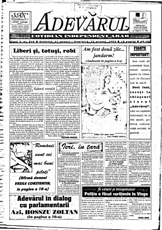Adevărul, anul V, nr. 949, 1993-08-21