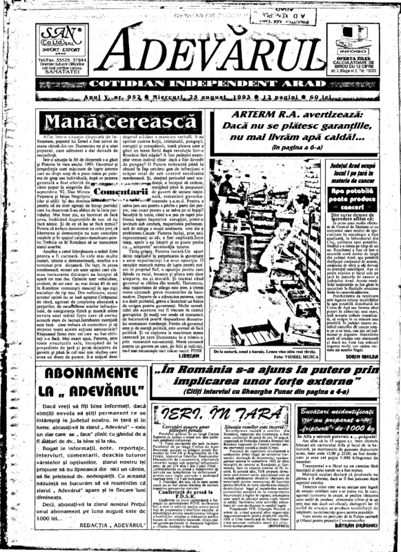 Adevărul, anul V, nr. 952, 1993-08-25
