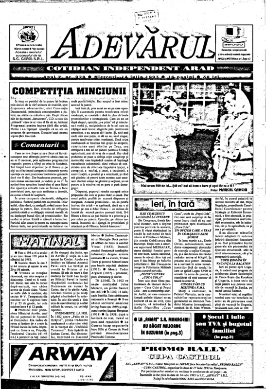 Adevărul, anul V, nr. 928, 1993-07-24/25