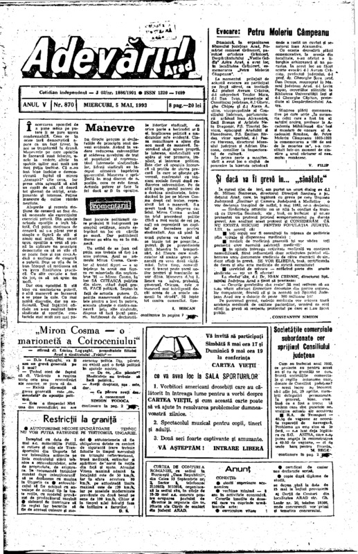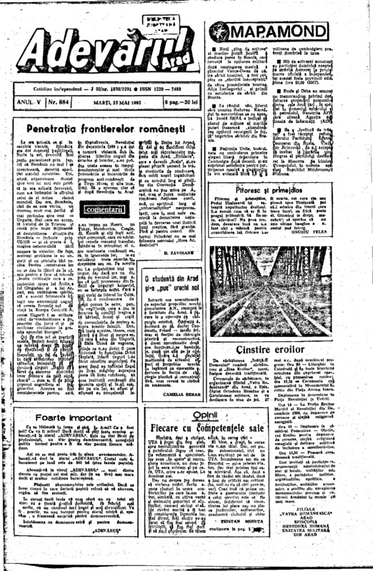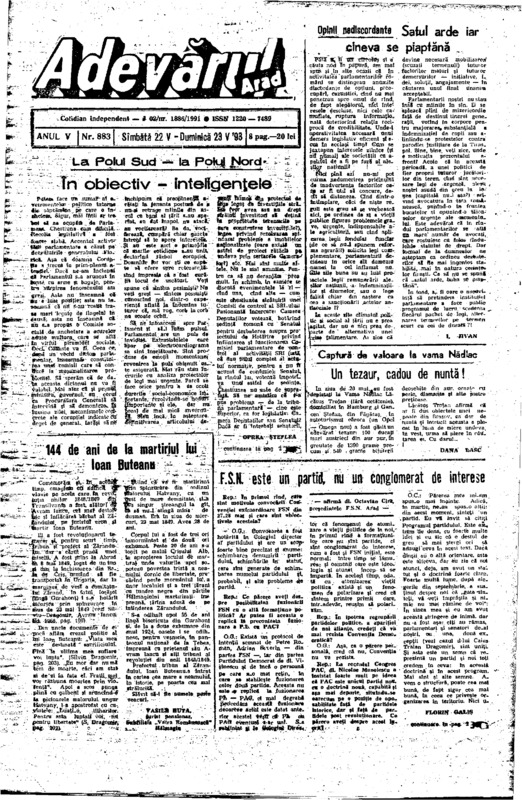 Adevărul, anul V, nr. 883, 1993-05-22/23