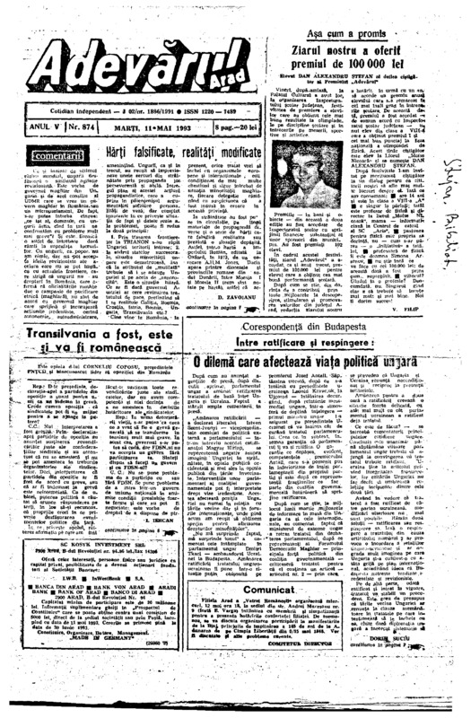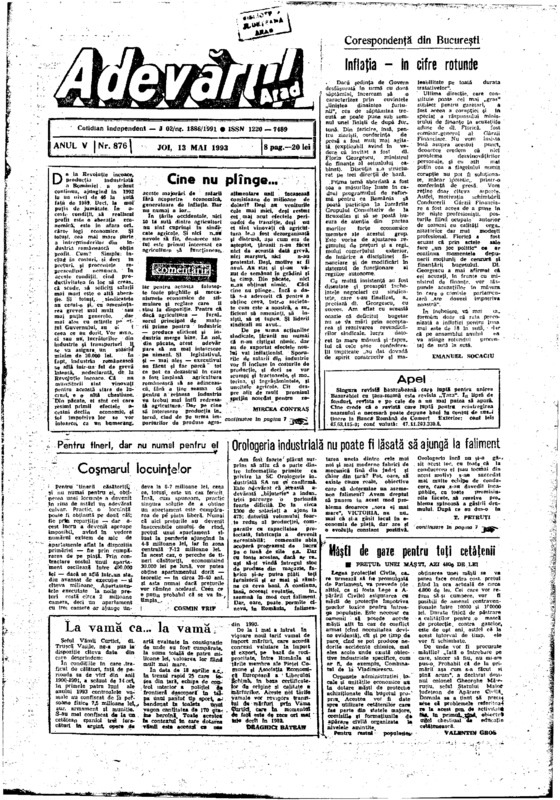 Adevărul, anul V, nr. 873, 1993-05-08/09