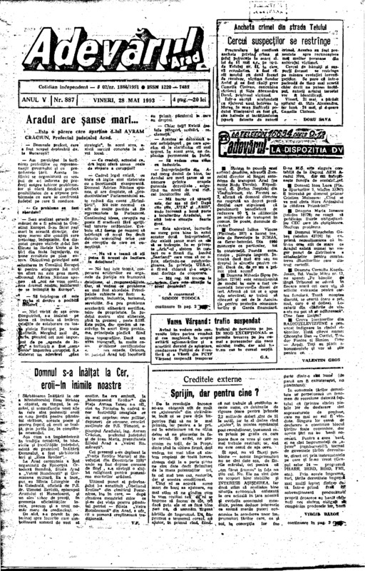 Adevărul, anul V, nr. 888, 1993-05-29/30