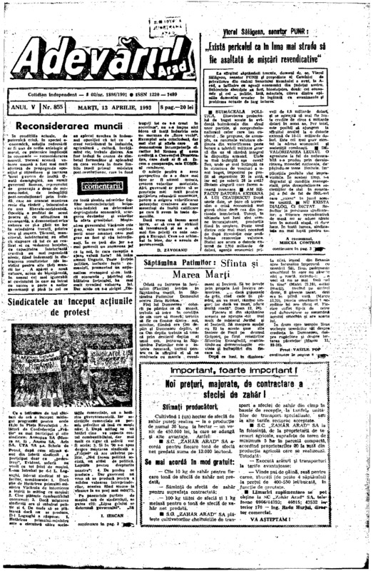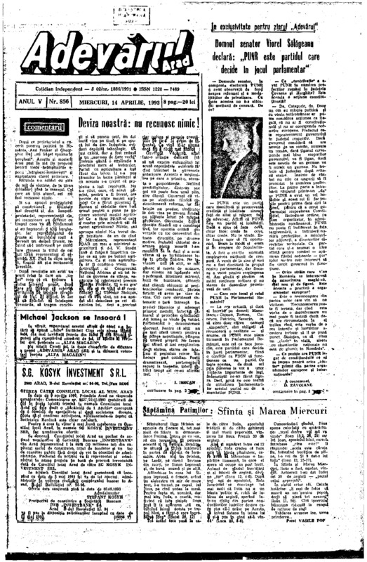 Adevărul, anul V, nr. 856, 1993-04-14