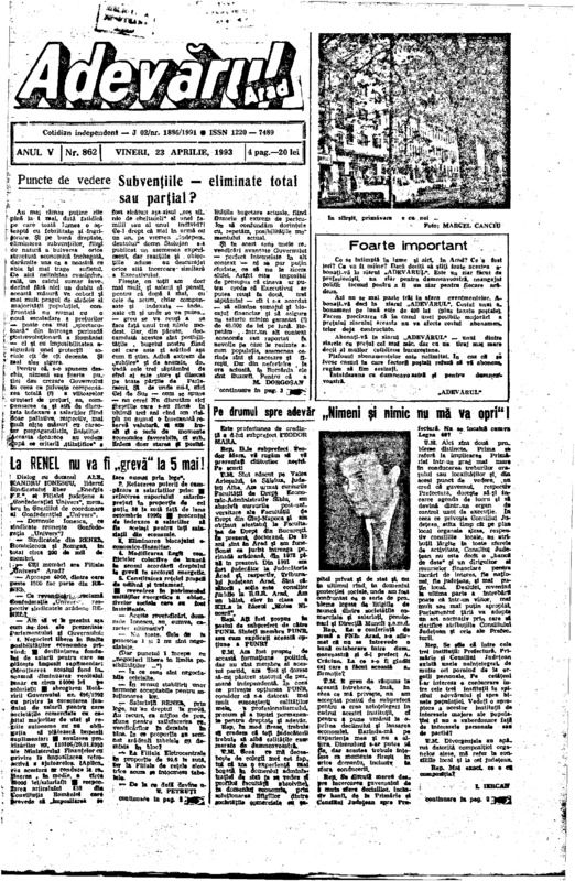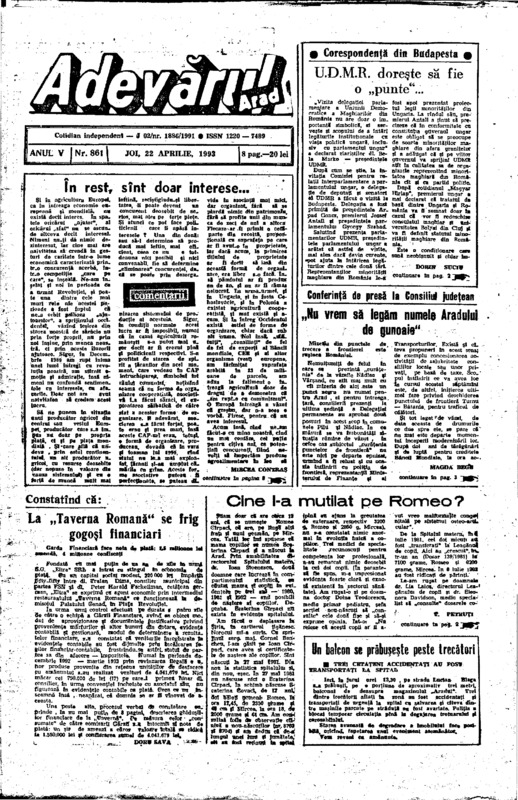 Adevărul, anul V, nr. 861, 1993-04-22