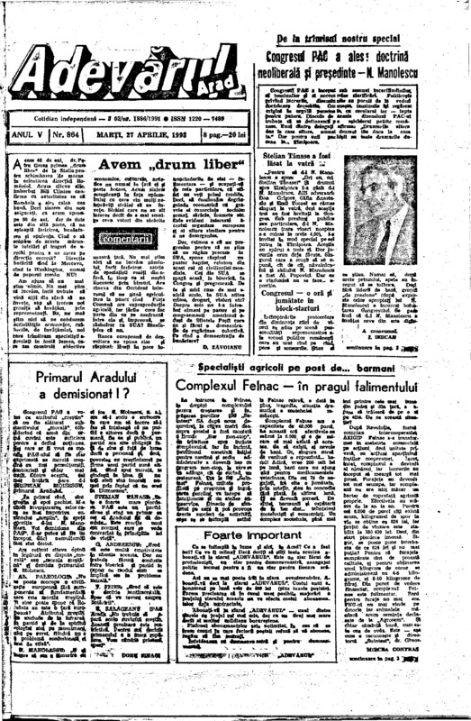 Adevărul, anul V, nr. 864, 1993-04-27