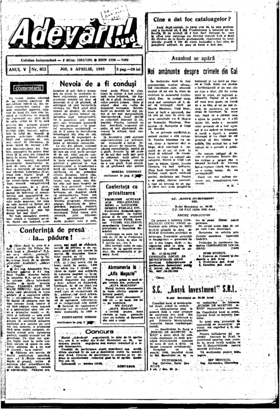 Adevărul, anul V, nr. 852, 1993-04-08