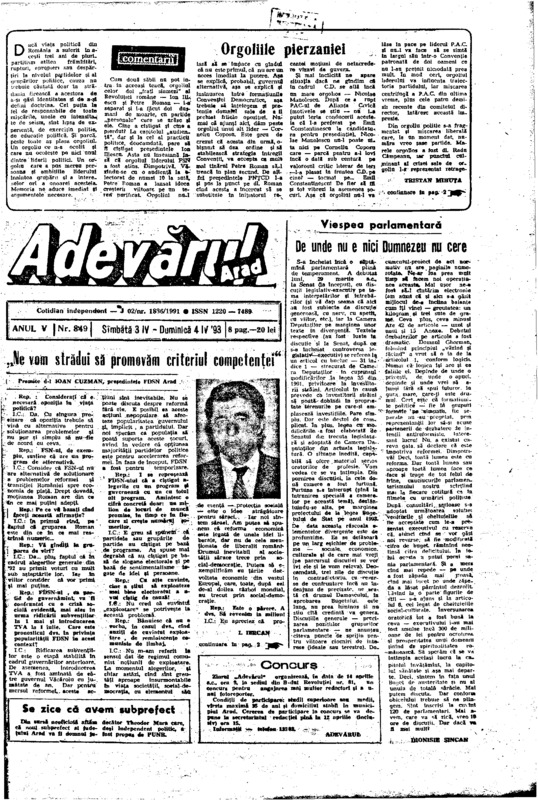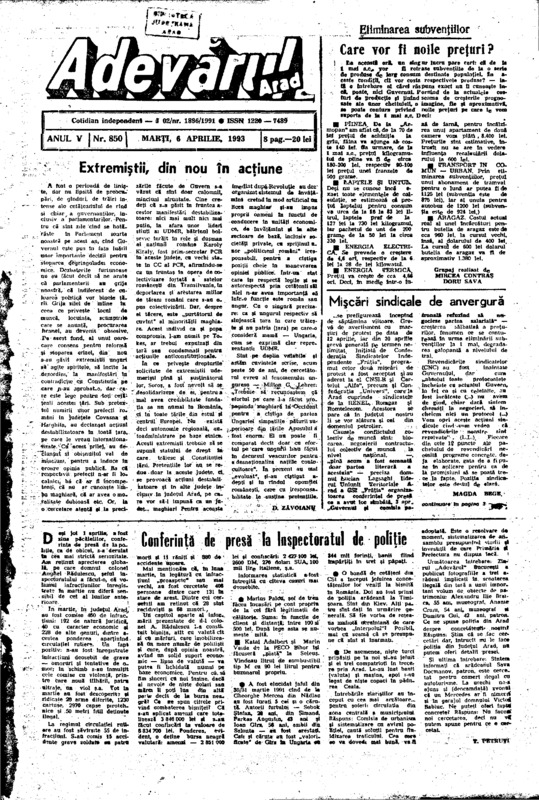Adevărul, anul V, nr. 850, 1993-04-06