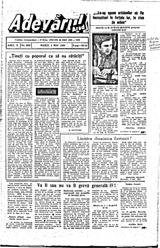 Adevărul, anul V, nr. 868, 1993-05-01/02
