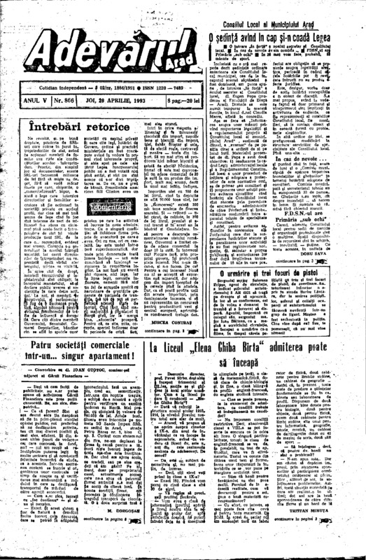 Adevărul, anul V, nr. 866, 1993-04-29