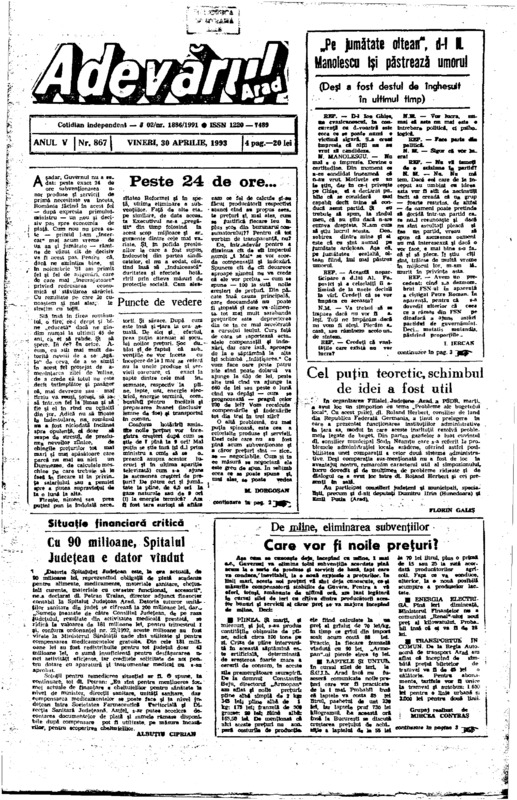Adevărul, anul V, nr. 863, 1993-04-24/25