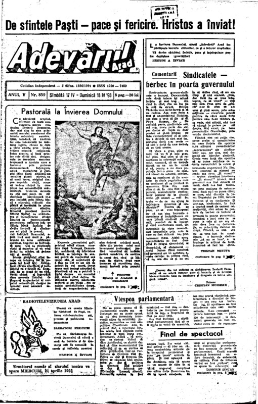 Adevărul, anul V, nr. 859, 1993-04-17/18