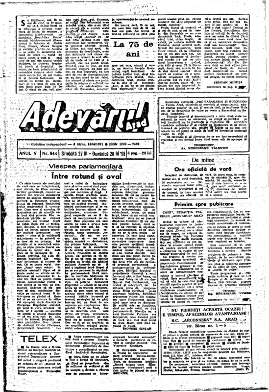 Adevărul, anul V, nr. 844, 1993-03-27/28